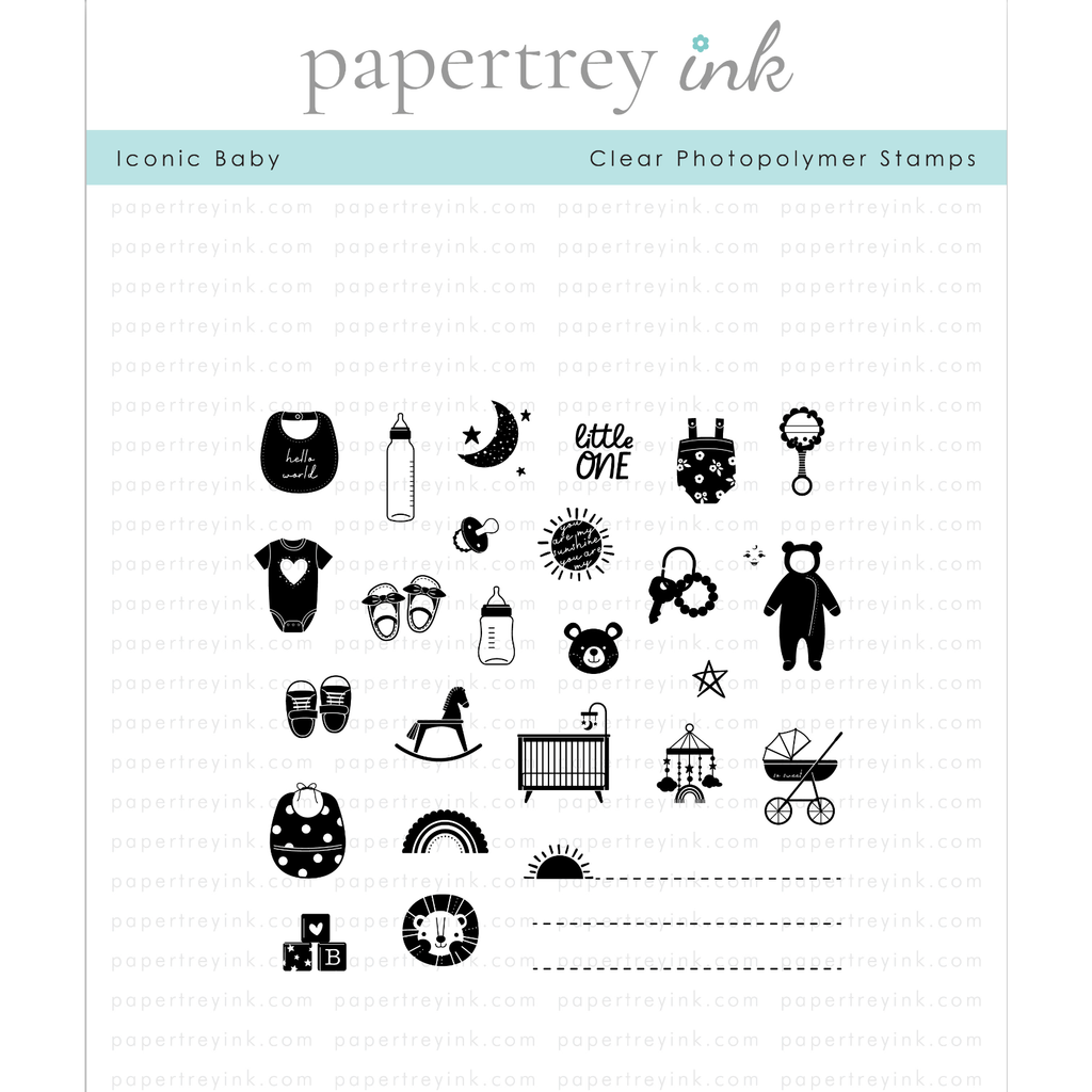 Introducing the Papertrey Ink Iconic Baby Clear Stamps! With this delightful stamp set, you can make every baby celebration truly iconic. These adorable and fun icons are designed to add a touch of charm to your projects, making it easy to decorate a wide range of items. While originally created for envelope decoration, we've discovered that these icons are versatile and can be used in various ways!