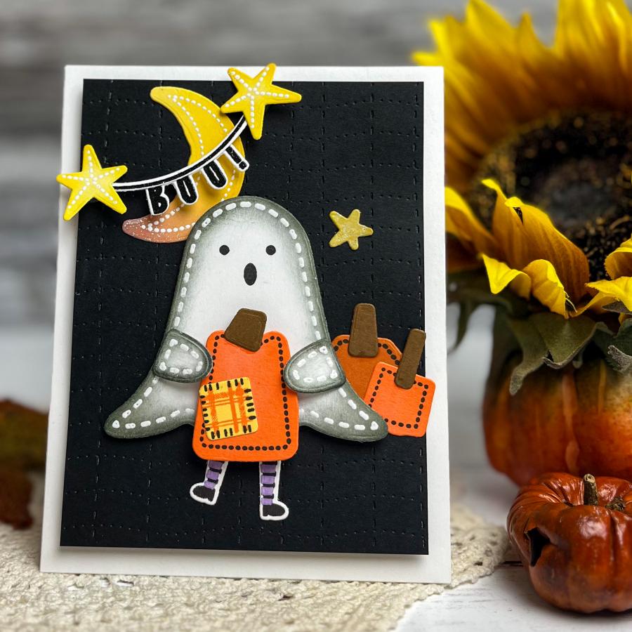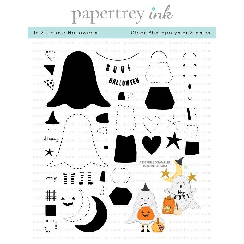 Get ready for a spooky-cute crafting experience with Papertrey Ink's In Stitches: Halloween stamp set! This charming set features an adorable ghost with stitched edging, customizable with playful facial expressions and fun accessories, allowing you to give your ghost its own unique personality. It also includes stitched pumpkins and a sweet banner that the ghost can hold, adding a festive touch to your Halloween cards. This set is perfect for celebrating the spooky season ahead!