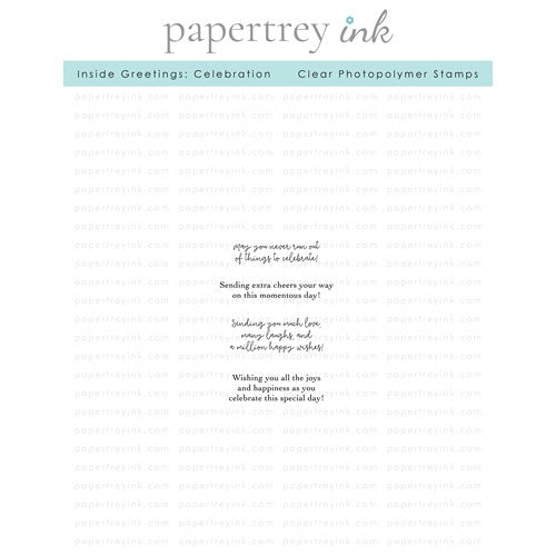 Many of us struggle when it comes to filling the space on the inside of our greeting cards. With Inside Greetings, a series of sentiment stamps, we’ve done the work for you! These longer messages in simple fonts take the guesswork out of that task. Inside Greetings: Celebration features an assortment of sentiments to keep you covered for any and all celebratory occasions from birthdays to weddings to days that are special just because!