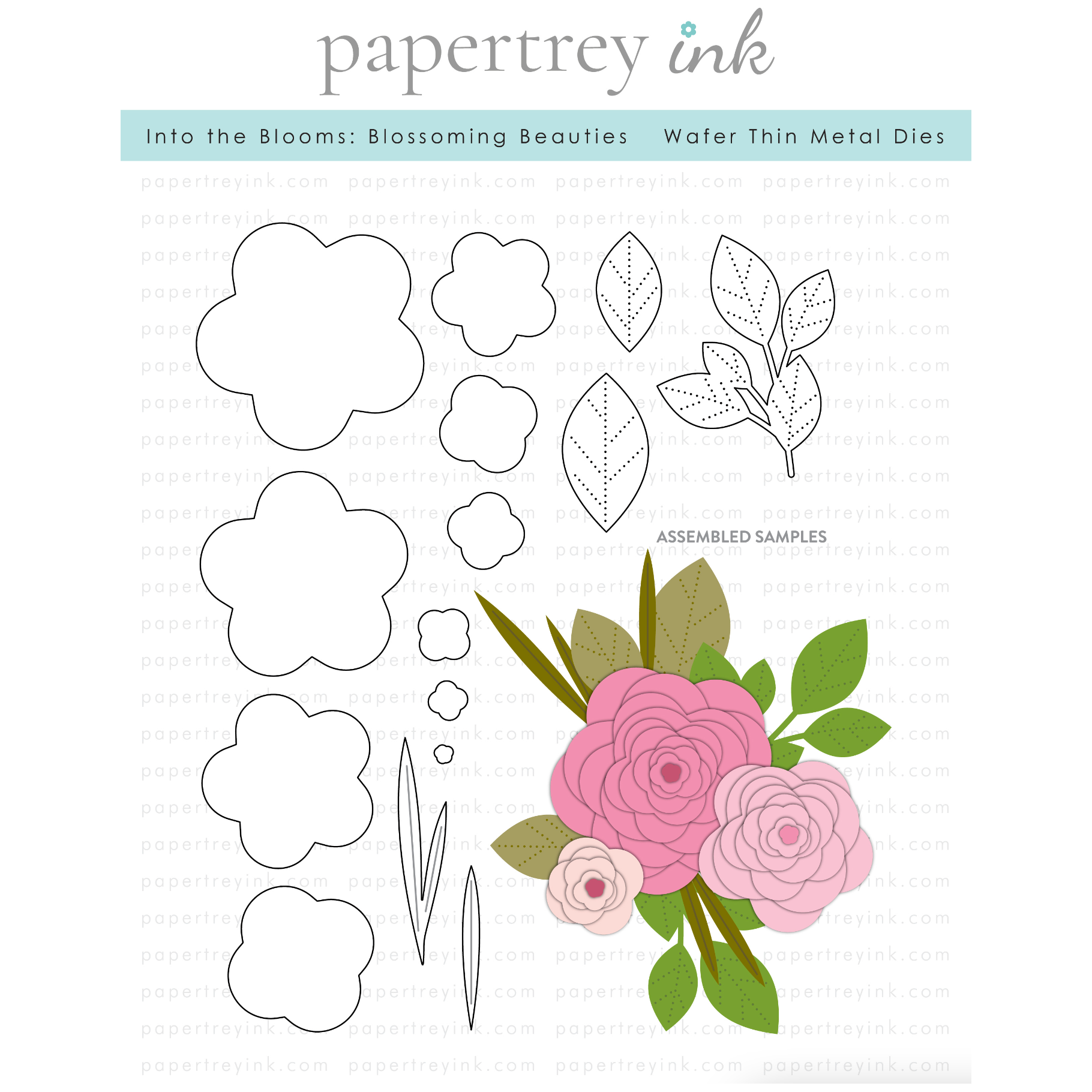 Introducing the Papertrey Ink Into the Blooms: Blossoming Beauties Die, a stunning and versatile addition to your crafting supplies. This die set features 15 wired shapes, including a variety of flowers and leaves.