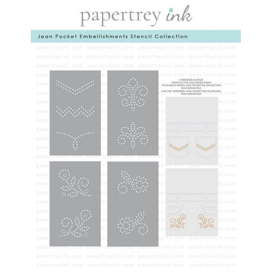 Papertrey Ink Jean Pocket Embellishments Stencils is a set of four 2.0125 x 3.5 inch stencils designed to bring stitched charm to your crafting projects. Made to coordinate seamlessly with the Cornered: Jean Pocket Dies PTI-0950 and Elegant Edges: Jean Pocket Dies PTI-0949, both sold separately, this collection lets you add detailed, thread-free stitching effects to your jean pocket die cuts. Whether you're going for a hand-sewn look or adding playful texture, these stencils make it easy to personalize your pockets with style and heart.