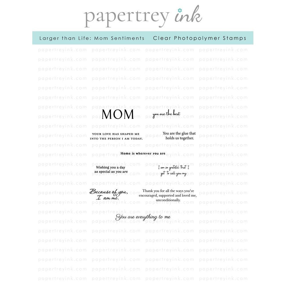 Enhance your crafting projects with the Larger than Life: Mom Sentiments by Papertrey Ink. Designed to coordinate perfectly with the Larger than Life: Mom Die, these sentiments are meant to complete or enhance the word Mom, creating thoughtful and heartwarming messages that you can send to family and friends alike.