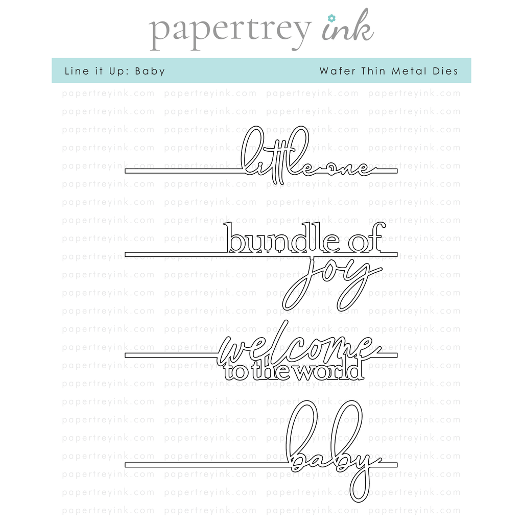 The Papertrey Ink Line It Up: Baby Dies are a set of crafting dies that feature four wired shapes to add adorable baby-themed sentiments to your projects. The main die in this set is called "Line It Up: Baby Die".