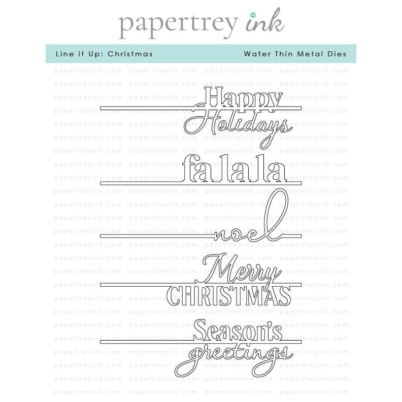 The Papertrey Ink Line it Up Christmas Dies set includes five holiday-themed words, each designed in a unique font along a horizontal line. This set offers a playful way to add festive sentiments to your projects and card fronts!