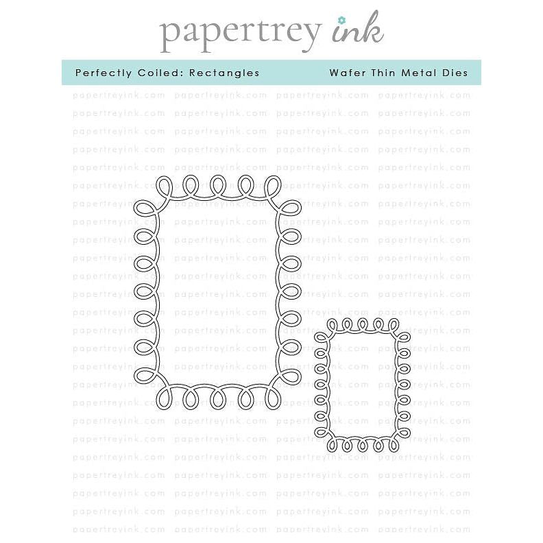 The Papertrey Ink Perfectly Coiled Rectangles Dies set includes two rectangular dies featuring a fun coiled line. The rectangle sizes are: