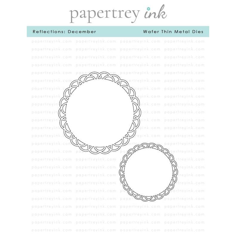 The Papertrey Ink Reflections December Dies are designed to coordinate with the Reflections December Clear Stamp Set 1622. This die set includes two lacy circle dies, perfect for framing sentiments or adding a decorative accent to your crafting projects. These versatile dies bring an elegant and festive touch to cards, scrapbook pages, and other paper crafting creations.