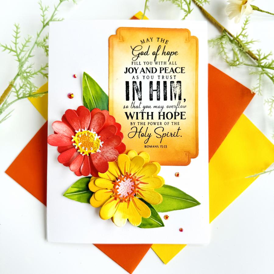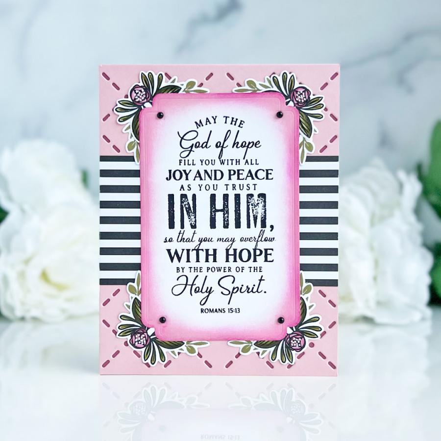 - May the God of hope fill you with all joy and peace as you trust in him, so that you may overflow with hope by the power of the holy spirit. Romans 15:13