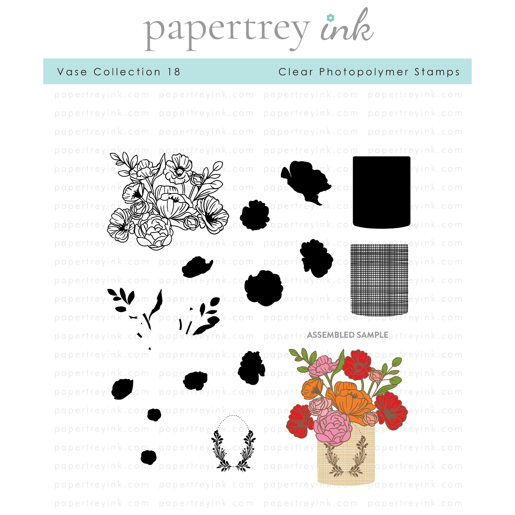 Introducing the Papertrey Ink Vase Collection 18 Clear Stamps! This collection is a must-have addition to your stamp collection, especially if you love creating floral-themed cards and projects. With this set, you'll have a variety of options when it comes to adding a vase to your beautiful bouquets!