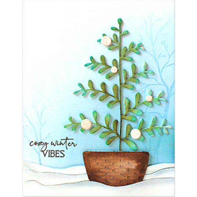 The Penny Black Berry Basket Thin Metal Creative Dies set consists of four pieces, including a tree, a basket, and two berries. Their approximate measurements are as follows: 0.2 x 0.2 inches, 0.3 x 0.3 inches, 1.8 x 1 inch, and 3 x 4 inches.