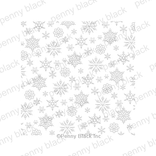 The Penny Black Blizzard Embossing Folder features a 6x6 inch size and is patterned with a blizzard of snowflakes.