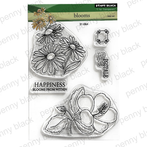 Introducing the Penny Black Blooms Clear Stamps, a delightful set measuring 5 x 6.5 inches. This fun stamp collection includes two charming floral images, a postage stamp design, a decorative square, and a sentiment to add personality to your projects. With its versatile elements, this stamp set offers endless creative possibilities for crafting cards, scrapbook pages, and more. For added convenience, coordinating dies are also available separately, allowing you to effortlessly cut out the stamped images for a polished finish. Let your creativity bloom with the Penny Black Blooms Clear Stamps!