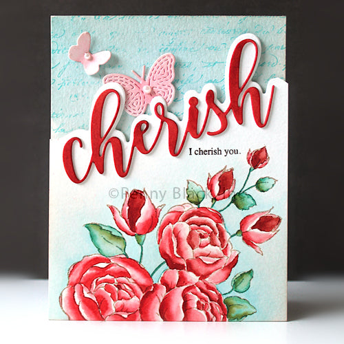 The Penny Black Cherish Edger Dies set includes two dies: one featuring the word Cherish in a lovely script font, and the other designed as a bottom edge die to create a fun and dynamic effect on your projects.