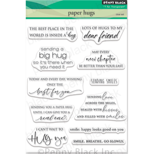 The Penny Black Clear Stamp Paper Hug is a 5 x 6.5 inch clear stamp set that features a variety of sentiment stamps. This set is designed to provide heartfelt and comforting messages when used with an acrylic block or stamping platform. With the Paper Hug Clear Stamp set, you can easily express your care, support, and warm wishes to your loved ones through your paper crafting projects. The sentiments included in the set are perfect for sending words of encouragement, sympathy, or simply letting someone know that you are thinking of them. Use these stamps to create heartfelt cards, scrapbook pages, or other crafts that convey your emotions and bring comfort to others.