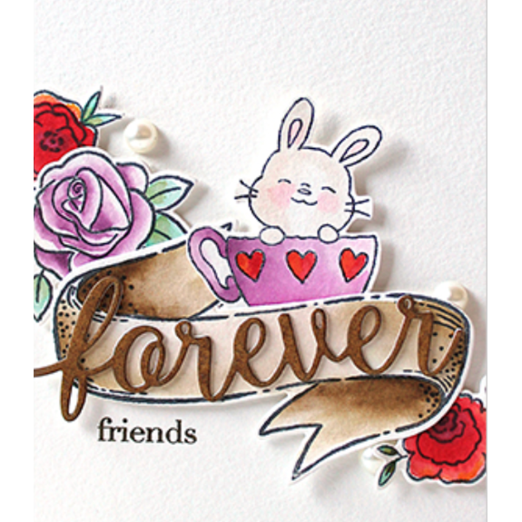 The Penny Black Clear Stamps Cuteness is a delightful 5x6.5 inch clear stamp set that showcases adorable bunny rabbits and cats engaged in various charming activities. These endearing critters can be seen holding flowers and balloons, hugging envelopes and hearts, and even sitting in teacups!