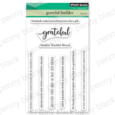 Discover the art of gratitude with the Penny Black Clear Stamps Grateful Builder, a 4x6 inch clear stamp set designed to elevate your card creations. Featuring a selection of 9 heartfelt sentiments that beautifully complement each other, this set opens up a world of possibilities for expressing your appreciation on any occasion.