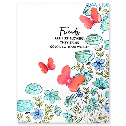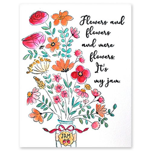 The Penny Black Cling Stamps Flowers and Flowers 40-838 is a set of two high-quality stamps. The first stamp measures 3.5 x 5.38 inches and features a beautiful and detailed design of clustered flowers. The second stamp measures 1.75 x 2.75 inches and features the sentiment Flowers and flowers and more flowers, it's my jam, in an elegant script font. Both stamps are made of high-quality cling rubber, which provides excellent image transfer and allows for easy positioning and repositioning on a clear acrylic block. The stamps are designed for use with a variety of inks, and the detailed designs ensure that every stamped image is crisp and clear. These stamps are perfect for creating beautiful and heartfelt designs on your crafting projects, including cards, scrapbook pages, and home decor items. Whether you're thinking of a loved one or just want to add a touch of beauty to your crafting, this set is a lovely choice.