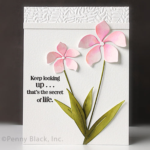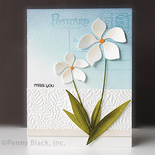 Penny Black Company of Flowers Dies is a set that includes two floral dies, each featuring beautifully blooming flowers with accent leaves. Perfect for adding elegant floral elements to your projects. Approximate die measurements: 2.36 x 5.12 inches and 1.75 x 3.75 inches.
