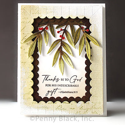The Double Frames Dies from Penny Black include two fun frame dies. Use them to create playful accents on your projects or windows on your card fronts! The largest frame measures approximately 4.22 x 5.32 inches.