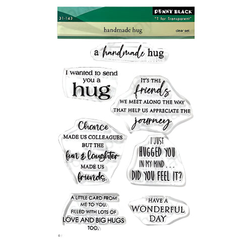 Penny Black Handmade Hugs Clear Stamps is part of the Laden Bough release and comes as a 4x6 inch clear stamp set. It includes 7 heartfelt and uplifting sentiments, perfect for expressing love, encouragement, and friendship on handmade cards and creative projects.
