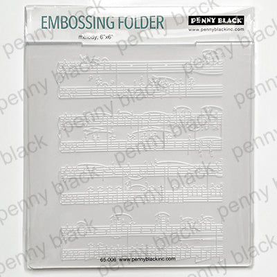 The Melody embossing folder from Penny Black is perfect for creating amazing musical backgrounds. Measuring 6x6 inches, this embossing folder will give you a beautifully textured sheet of music on your projects!