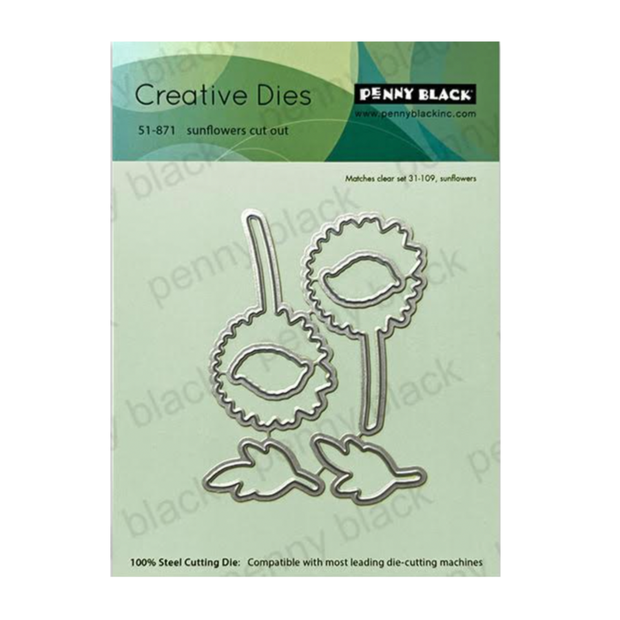 Penny Black Sunflowers Cut Out Coordinating Dies coordinate with the Sunflowers Clear Stamps 31-109, sold separately. This set includes 6 outline dies and is compatible with most leading die cutting machines.