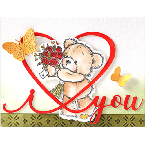 The Penny Black Teddy Bouquet Cut Out Thin Metal Creative Die is designed to perfectly coordinate with the Teddy Bouquet Clear Stamps 31-024. This set includes one die, measuring 8 x 3.2 inches