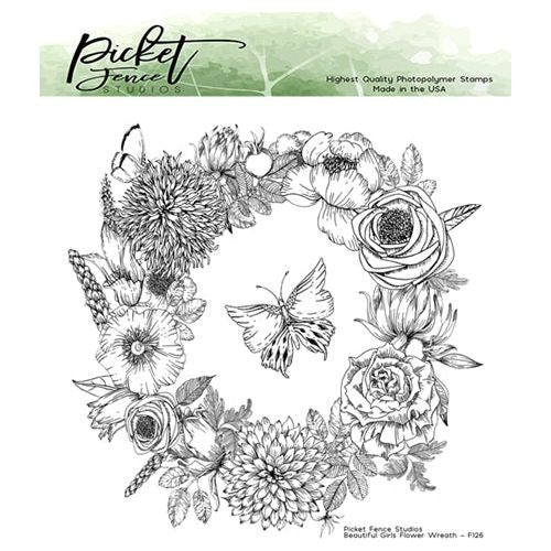 Picket Fence Studios BEAUTIFUL GIRLS FLOWER WREATH Clear Stamps bg126*