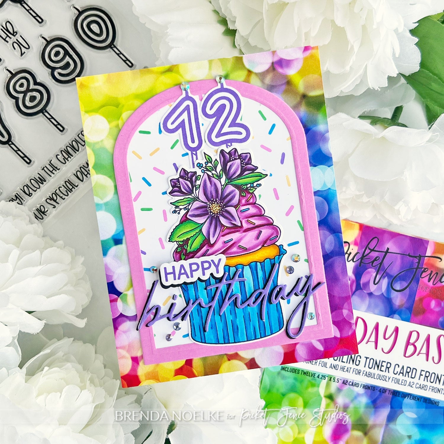 Picket Fence Studios Blow Out the Candles Dies are part of the Sentiments Collection. This set of wafer-thin dies measures 6 x 6 inches and includes 15 dies that perfectly coordinate with the Blow Out the Candles Clear Stamps s-222. Each die cuts out a coordinating stamp, featuring adorable candles with numbers on top and the wick atop the number. These charming number candles are ready to be lit! The set includes Numbers 0-9. Sentiments include "HB2U," "hurry, blow out the candles," "it’s your special day," "Love u," and "Happy birthday." Compatible with most die-cutting machines.