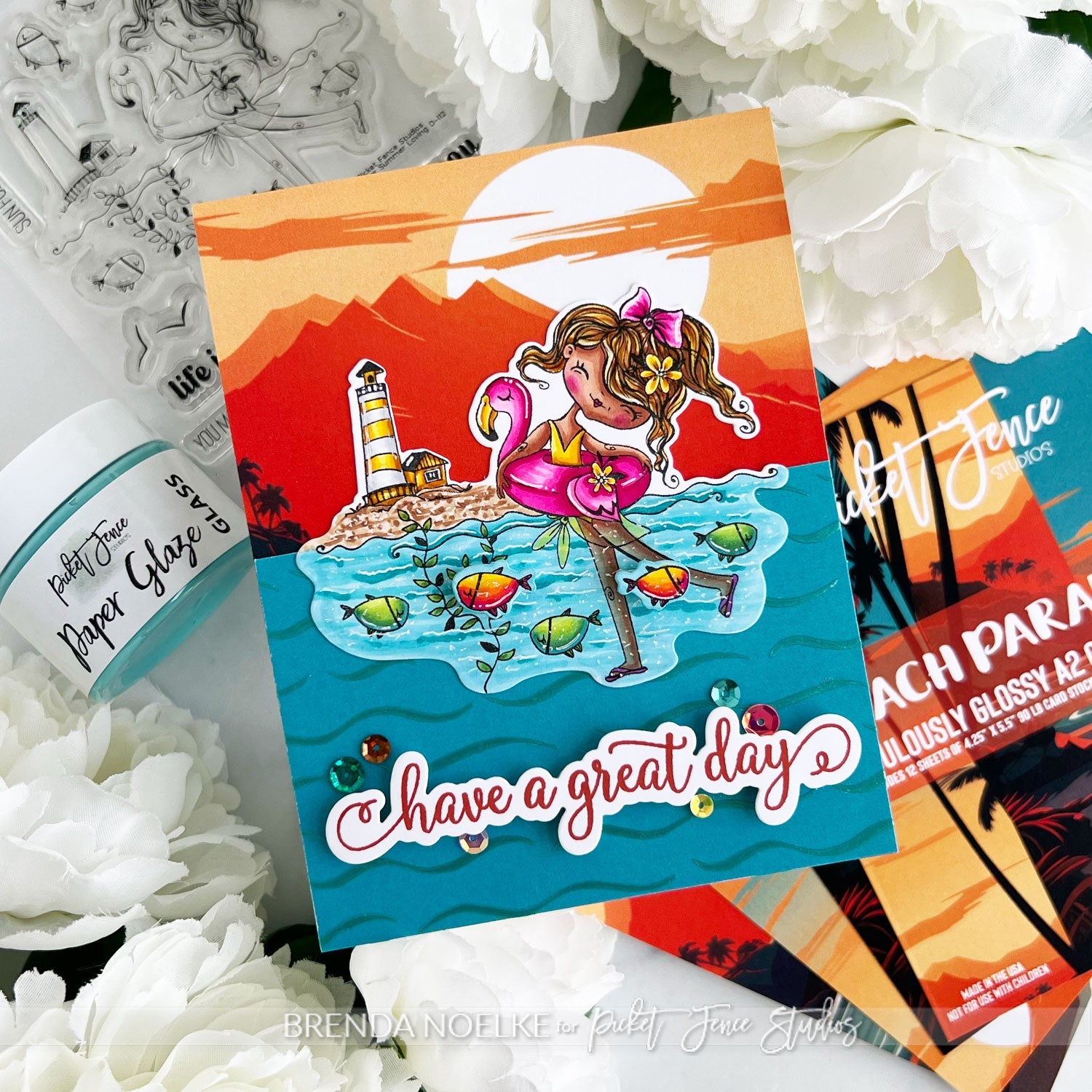 The Picket Fence Studios Dear Summer Loving Stamp and Die Bundle, part of the Dear Collection, offers everything you need to create captivating summer-themed crafts with ease and precision. This comprehensive bundle includes both the Dear Summer Loving Clear Stamps (d-112) and the coordinating Dear Summer Loving Dies (d-112d), providing you with endless creative possibilities to bring your projects to life. The 4 x 4-inch clear, photopolymer stamp set has 9 stamps, including a charming main image of a girl wading in water with her bathing suit on and wearing a flamingo inner tube. Beneath the surface, you'll find a captivating underwater scene teeming with fish, bubbles, and seaweed, as well as additional elements like fish, birds in flight, and a lighthouse, adding depth and dimension to your creations. The set also includes sentiments such as "Life is a beautiful thing," "You make summer a blast," "Life is better with you," and "Sun Fun here we come," allowing you to personalize your projects with heartfelt messages and warm wishes. Complementing the clear stamps is a 4 x 4-inch coordinating wafer-thin die set with 9 pieces, designed to effortlessly cut out the stamped images with precision and accuracy. Compatible with most die-cutting machines, these versatile dies make it easy to create professional-looking crafts with intricate details and clean edges.