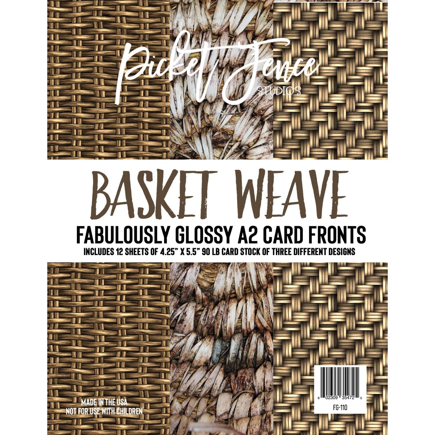The Picket Fence Studios Fabulously Glossy A2 Card Fronts Basket Weave is a fantastic addition to your crafting supplies. Each pack includes 12 card fronts, each measuring 4.25 x 5.5 inches, with four of each of the three delightful designs. Made from 90lb paper, these card fronts feature a semi-gloss finish and feature a tight brown weave, a woven circular weave and a plaiting weave. You can easily use them as patterned paper to create beautiful backgrounds that enhance the overall appeal of your cards.