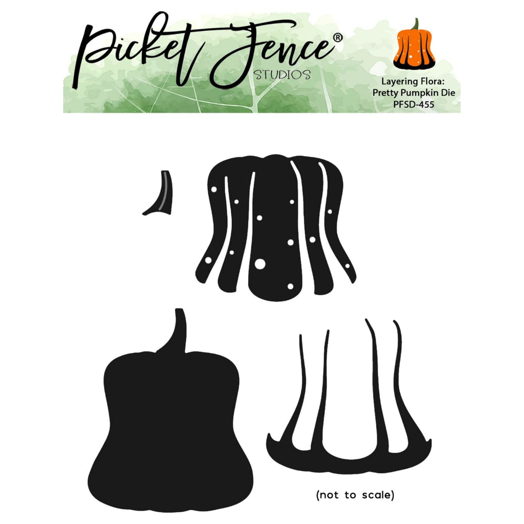 Picket Fence Studios Layering Flora: Pretty Pumpkin Dies are designed to be compatible with most die-cutting machines. This set includes five wafer-thin dies, approximately assembling into a size of 2.11 x 2.62 inches. Create a charming misshapen pumpkin that can be layered for dimensional and textural effects.