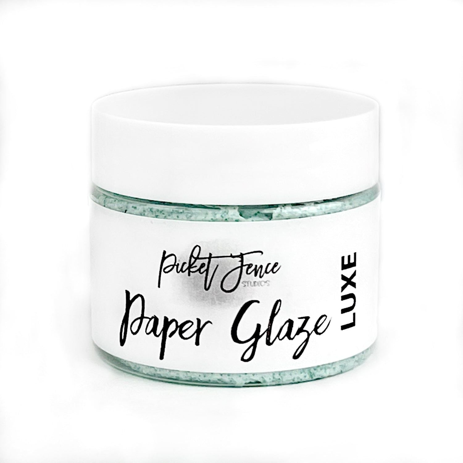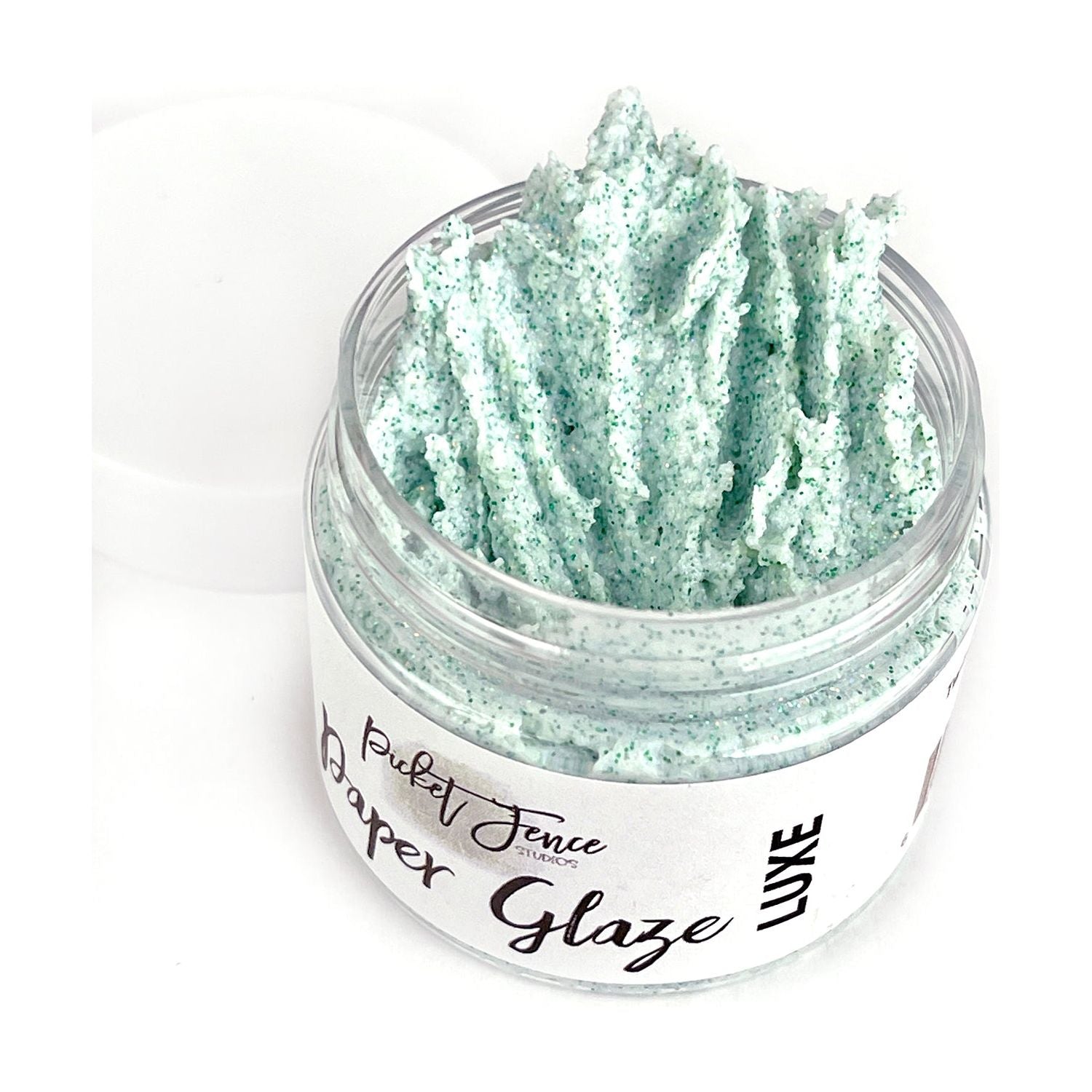 Paper Glaze Luxe is a mixed-media product that provides luster and shine to porous and nonporous surfaces. This heavy body art medium is infused with mica and glitter to glide across paper leaving a thick or thin layer of glittery shimmer. Luxe can be used directly on paper, through a stencil, or transferred from a gel press. Glitter remains sealed with no flaking. Add to other art mediums to create unique techniques for your card making, scrapbooking or mixed-media art projects. Best used with 100 lb. or thicker cardstock. Fast-drying permanent opaque medium with drying time varying from climate to climate and thickness of application. Be sure to clean tools, surfaces, and stencils quickly after use. Keep away from heat and direct sunlight for a longer shelf life. Store with the lid facing up. The jar contains approximately 2 ounces of Luxe in the Twinkle Lights Seas color, which is a deep light sea foam blue, with dark blue-green sparkle.