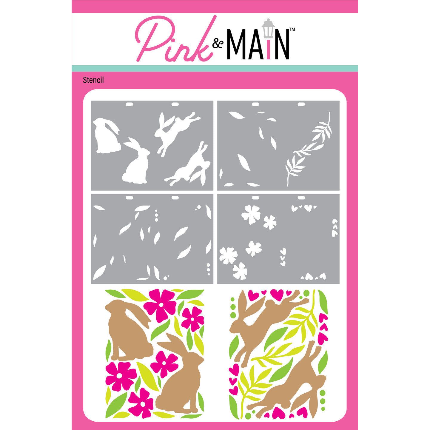 The Pink and Main Bunny Hop Set 1 Stencils is a set of 4 versatile stencils, each measuring 6.5 x 8.5 inches. These stencils can be used independently to create charming backgrounds, but they truly shine when paired with the Bunny Hop Set 1 Foilables Sheets PMF284. Together, they allow you to add intricate details to bunnies and flowers, elevating your designs with layered depth and texture. Perfect for crafting festive Easter and spring-themed projects!