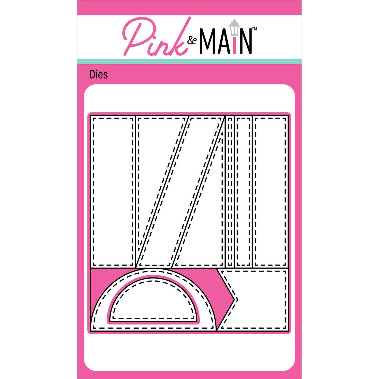 The Pink and Main Card Cut Essentials 4 Dies make it easy to cut versatile shapes for cards and projects. This set cuts a 6x6 inch paper into triangle, rectangle, pointed flag, and half-circle shapes, each featuring a fun stitching detail around the edges.