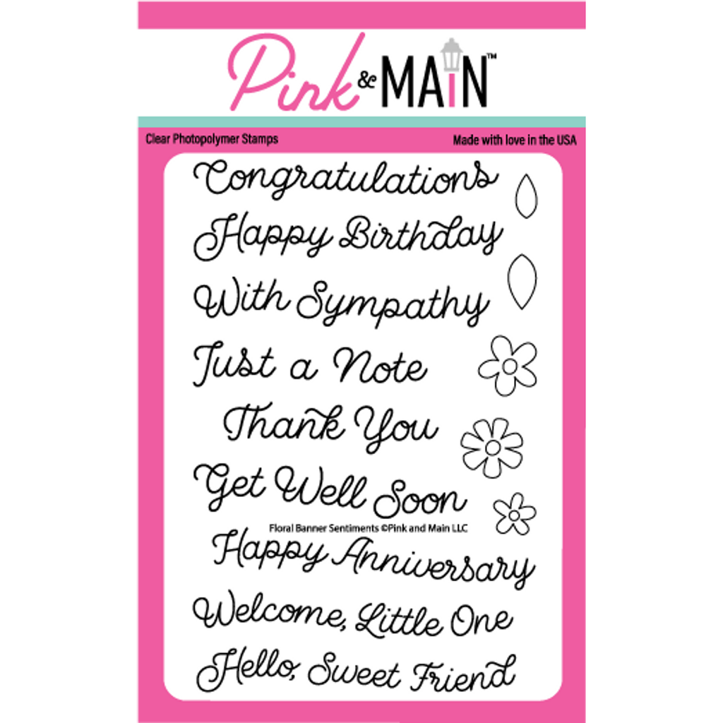 This 4x6 inch stamp set from Pink and Main features great sentiments for all occasions and is the perfect complement to the Pink and Main Floral Banner Dies pnm662. This set includes 9 sentiments and 5 flower or leaf accents, making it ideal for creating beautiful, heartfelt projects.