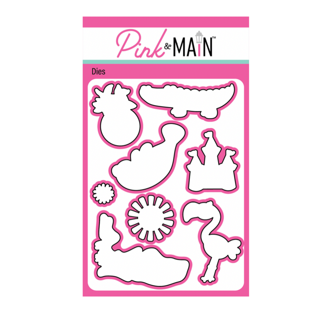 The Pink and Main Florida Sunshine Dies coordinate with the Florida Sunshine Clear Stamps PM0797, sold separately. This set includes 8 outline dies designed to cut out the stamped images with precision. Compatible with most leading die cutting machines, these dies are perfect for adding layered detail to your sunny, Florida-inspired projects.