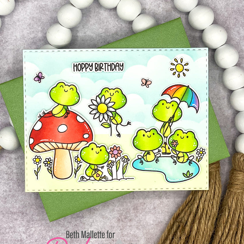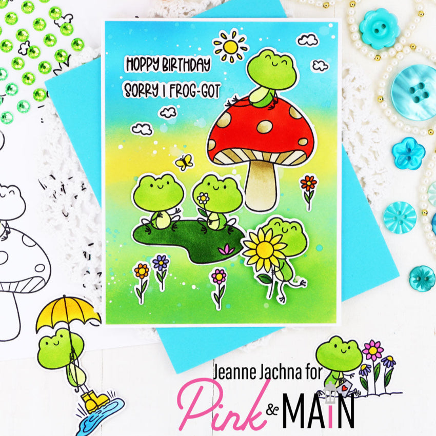 Pink and Main Fun Froggies Dies coordinate with the Fun Froggies Clear Stamps PM0785, sold separately. This set includes 14 outline dies to cut out the stamped images. Compatible with many popular die cutting machines.