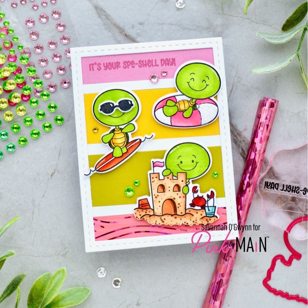 The Pink and Main Gentle Waves Foilables Panels feature both positive and negative wavy line designs, each creating a charming A2-sized background which is 4 x 5.25 inches. This set includes 8 toner-printed sheets, 4 of each design, ready to be foiled using toner foils with a laminator or foiling machine. Perfect for adding a fresh, shiny touch to your cards, tags, and seasonal paper crafts.