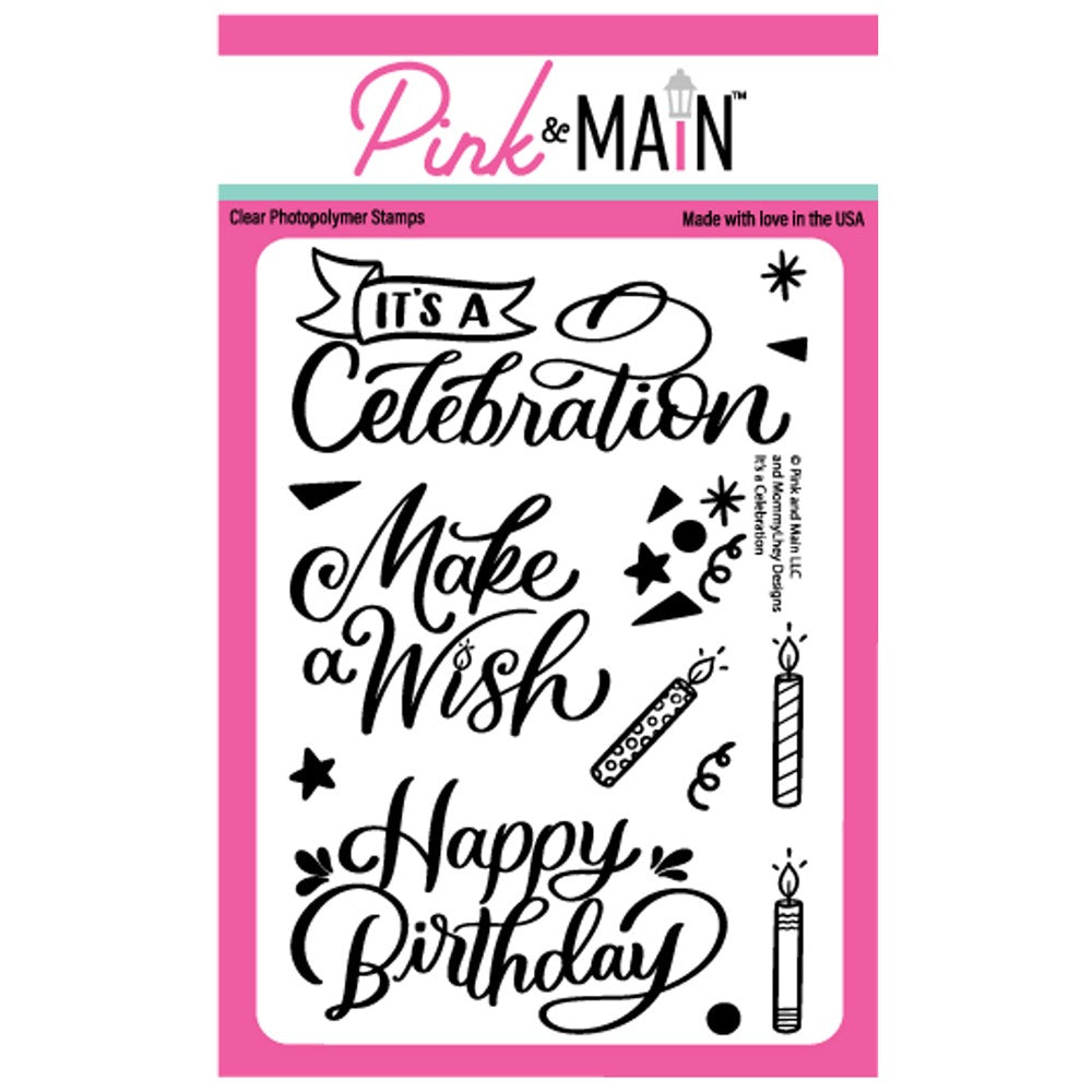 The Pink and Main It's a Celebration Clear Stamps set is a versatile and elegant set of hand-lettered sentiments that are perfect for adding a special touch to your cards and other paper crafts. The set includes multiple stamps with sentiments such as Happy Birthday, Make a Wish, and It's a celebration.