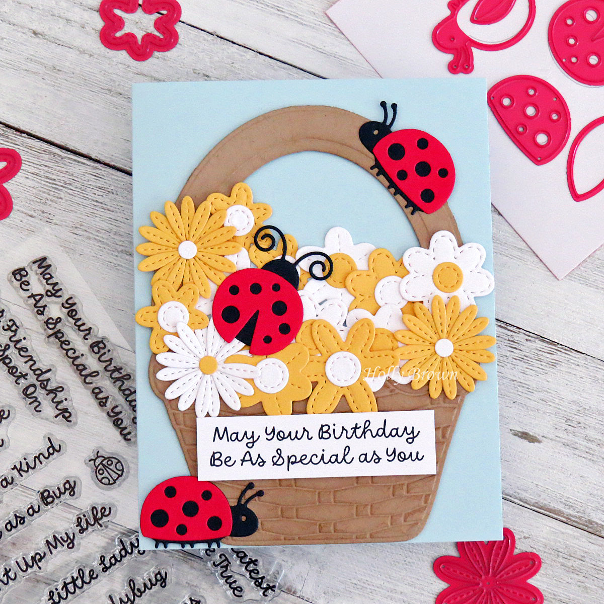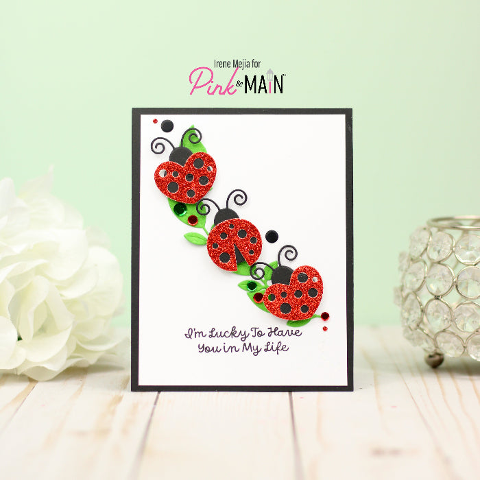 The Pink and Main Ladybug Dies is a set of 16 high-quality dies for creating adorable ladybugs in various poses, along with a stick and leafy accents. Perfect for building cute, layered scenes on cards, scrapbook pages, and more. The included stick measures approximately 4 inches long. Compatible with most leading die-cutting machines.