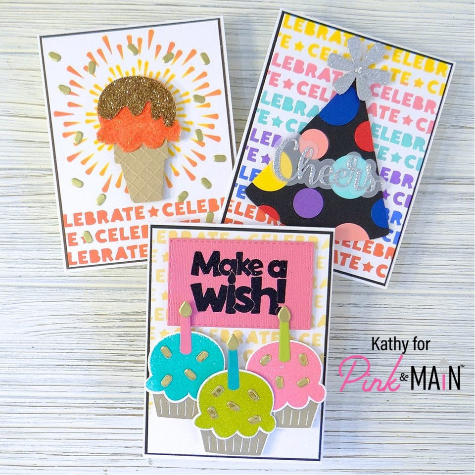 The Pink and Main Make a Wish Dies is a remarkable collection comprising 18 high-quality steel-rule dies that perfectly complement the Make a Wish stamps. These dies precisely cut the shapes shown and can be used with various die cutting machines, including the Big Shot, Spellbinders Platinum, Gemini, and other popular models.