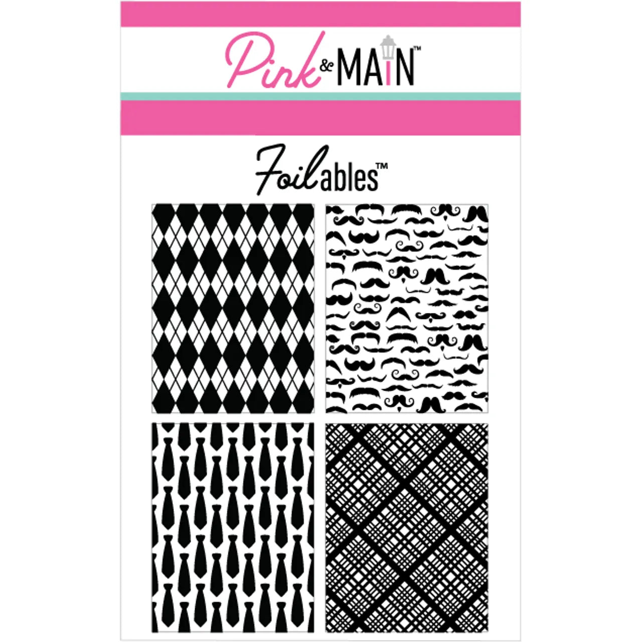 Unleash your creativity with Pink and Main's exquisite Masculine Foilable Panels! Craft stunning foiled designs using our A2 sized Foilables, measuring 4 x 5.25 inches. Each pack includes 8 sheets eagerly awaiting the transformative touch of Pink and Main's CheerFoils and Minc Machine. Within this pack, you'll find 4 unique designs that are sure to capture the essence of masculinity. Embrace the charm of mustaches, long ties, plaid patterns, and argyle prints as you bring these designs to life in a radiant display of creativity. Let your imagination run wild and create awe-inspiring foiled masterpieces that celebrate the masculine spirit.