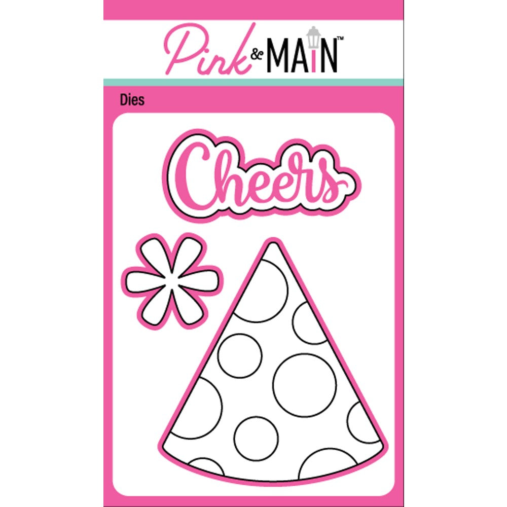 he Pink and Main Party Hat Dies is a delightful collection of four dies, which when used together, create an adorable party hat along with the word cheers and a shadow effect. These high-quality dies can cut through a variety of materials and are compatible with several popular die cutting machines including the Big Shot, Spellbinders Platinum, Gemini, and more.