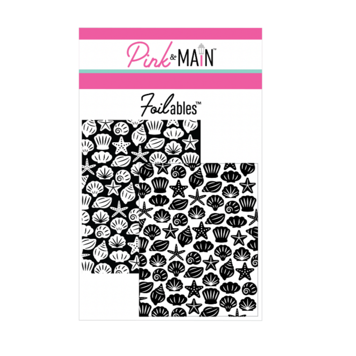 The Pink and Main Petite Shells Foilables Panels feature both positive and negative designs of seashells and starfish, each perfectly sized for an A2 background, 4 x 5.25 inches. This set includes 8 toner-printed sheets, 4 of each design, ready to be foiled with toner foils using a laminator or foiling machine. Ideal for adding shimmer and a beachy touch to your cards, tags, and summer-themed paper crafts.
