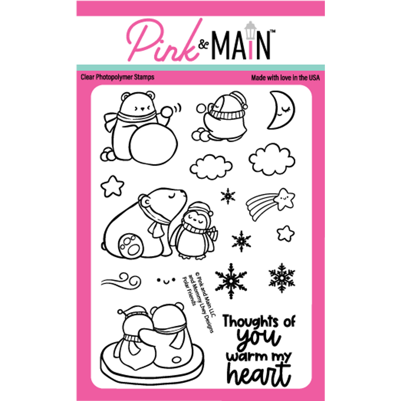 The Pink and Main Polar Friends Clear Stamps are a delightful 4x6 inch stamp set featuring charming scenes of polar bears and penguins engaged in activities like having a snowball fight, cuddling, and more. These adorable friends are sure to warm your heart and add a touch of sweetness to your projects. The set also includes fun accessories such as snowflakes, clouds, the moon, and a shooting star to help you create playful and heartwarming scenes.