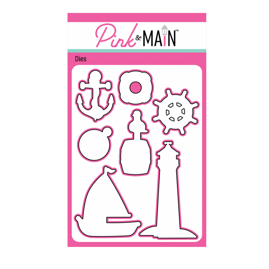 The Pink and Main Smooth Sailing Dies coordinate with the Smooth Sailing Clear Stamps PM0798, sold separately. This set includes 7 outline dies designed to cut out the stamped images with precision. Compatible with most leading die cutting machines, these dies are perfect for adding dimension to your nautical and summer-themed projects.