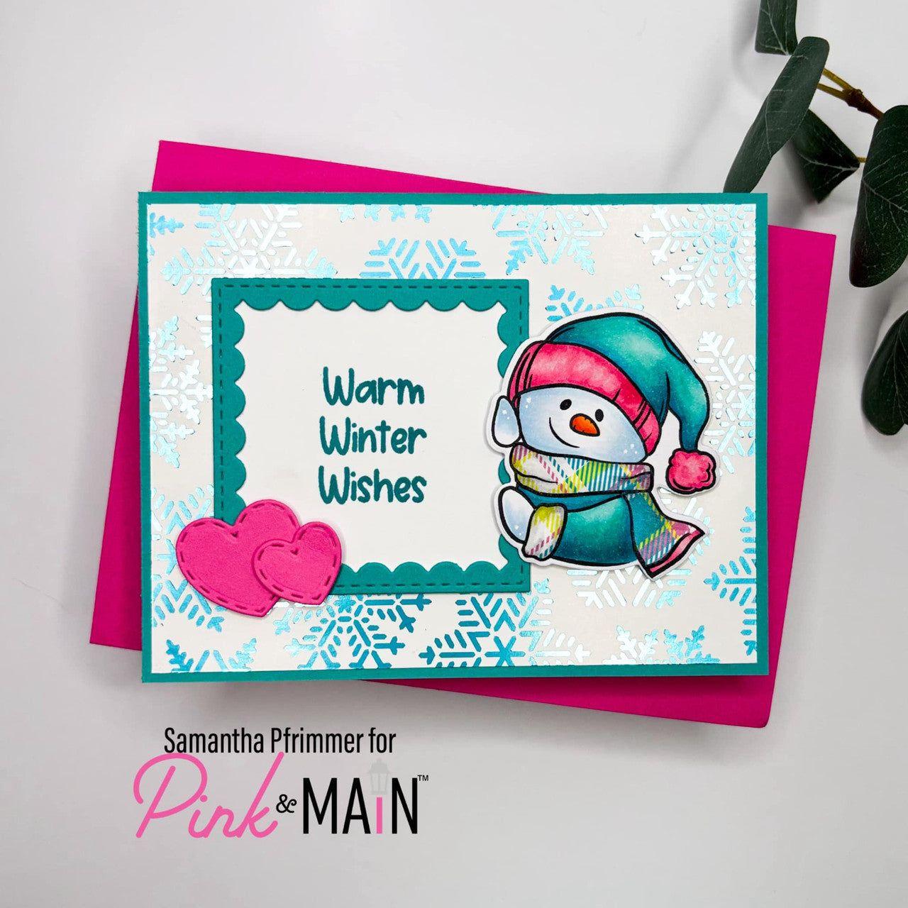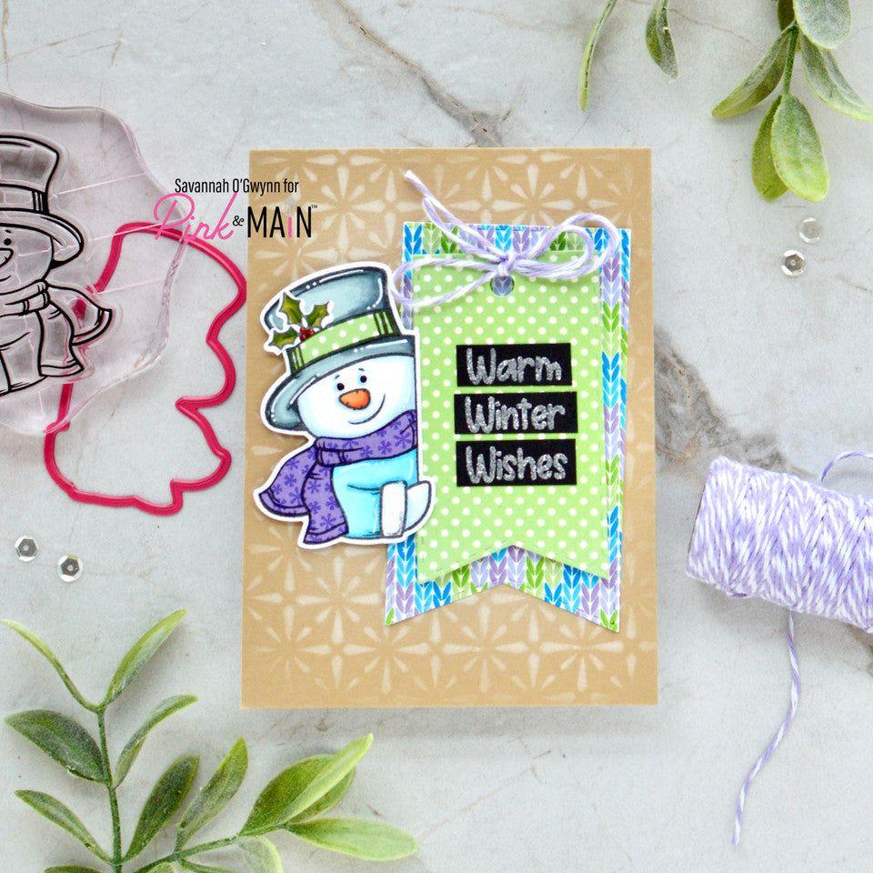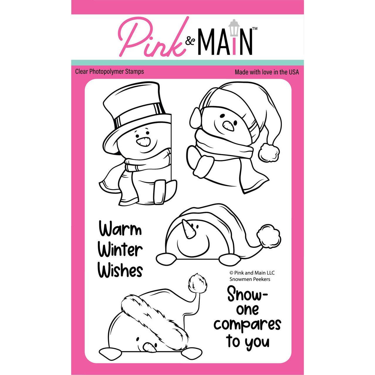 Pink and Main Snowman Peekers Clear Stamps feature four adorable snowmen peeking out from around whatever you choose to pair them with—be it the edge of a card, a strip of patterned paper, or other creative elements from your stash. These whimsical designs are perfect for adding playful charm to your projects.
