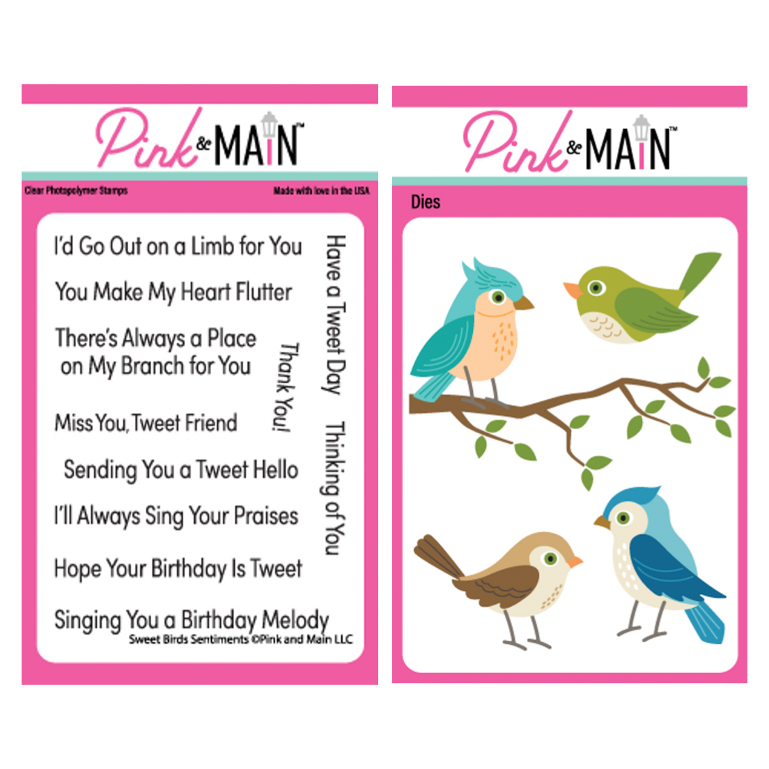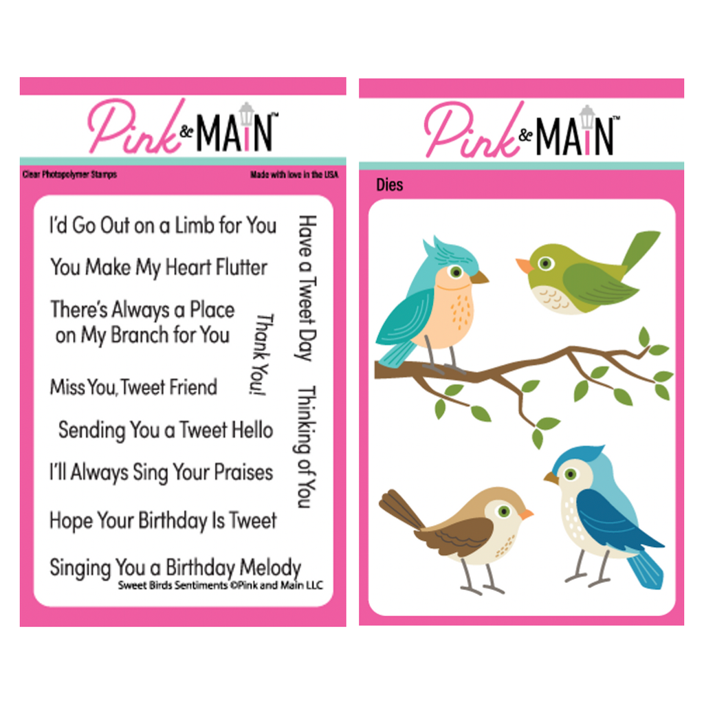 The Pink and Main Sweet Birds Sentiments Clear Stamps and Sweet Birds Dies set is a delightful combination for your crafting projects. The 3x4 inch stamp set includes 11 small sentiment stamps, perfect for adding heartfelt messages. The Sweet Birds Dies cut all the shapes needed to create layered birds and a branch with leaves for them to perch on. These dies are compatible with popular die cutting machines such as the Big Shot, Spellbinders Platinum, and Gemini. This set is perfect for creating charming, dimensional elements for your cards and other paper crafts.