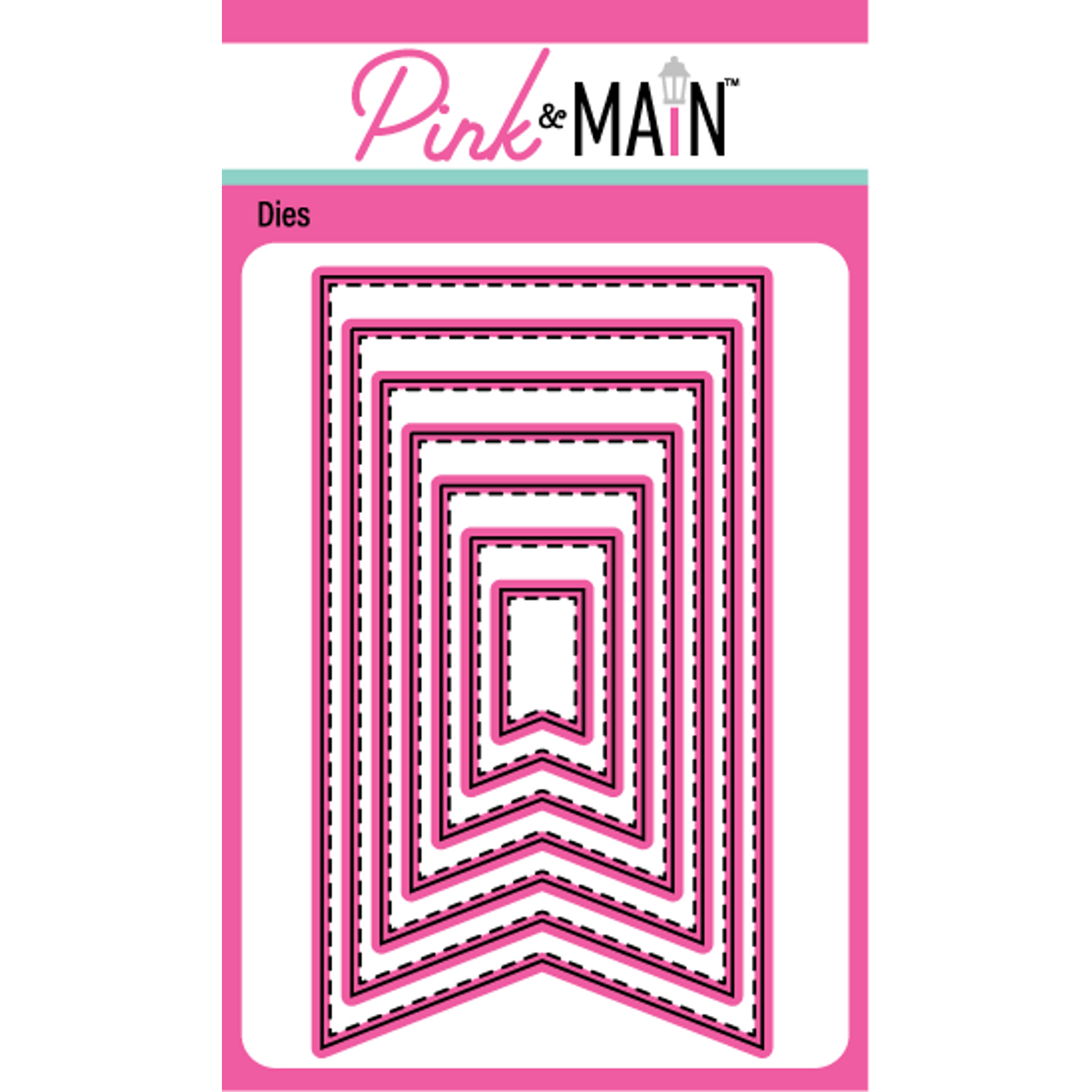 The Pink and Main Thin Flag Banner Dies are designed to cut a variety of banner shapes and are compatible with popular die cutting machines such as the Big Shot, Spellbinders Platinum, Gemini, and more. The set includes 7 banner dies with the following measurements: