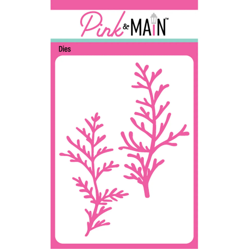 The Pink and Main Winter Fern Dies set includes two branches of winter fern, perfect for adding fun accents to your holiday projects. These dies are compatible with popular die-cutting machines like the Big Shot, Spellbinders Platinum, Gemini, and more. The fern dies measure 1.9 x 3.5 inches and 2 x 3.8 inches.